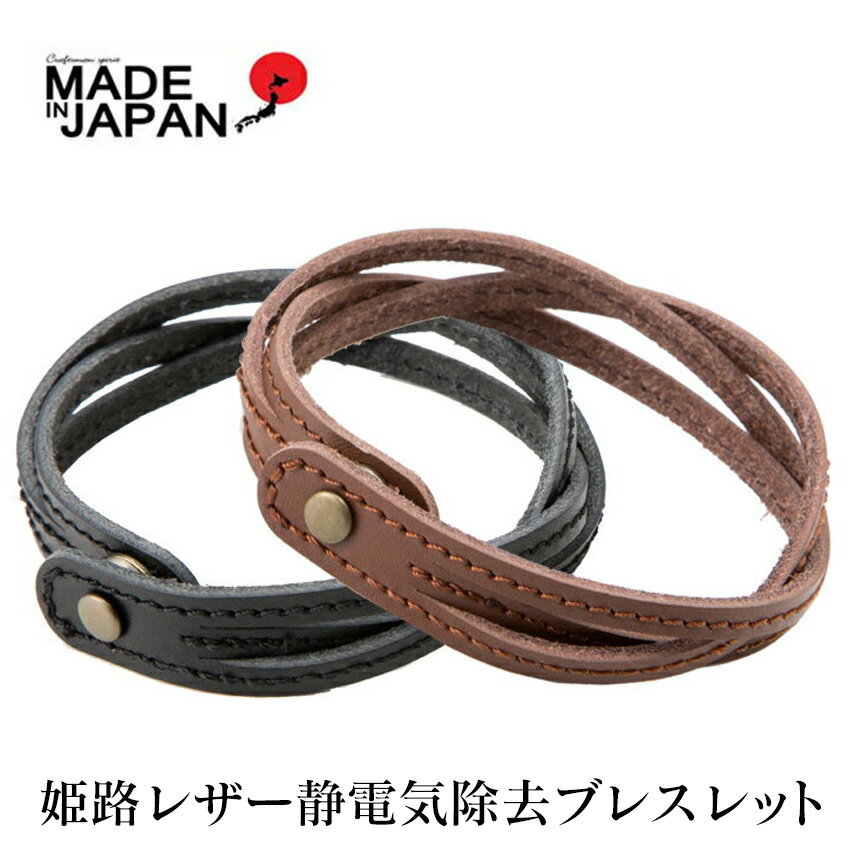 姫路レザーのおしゃれなメンズブレスレットです。スタイリッシュなデザインですし、手首にはめているだけで、手軽に静電気を除去してくれますよ。