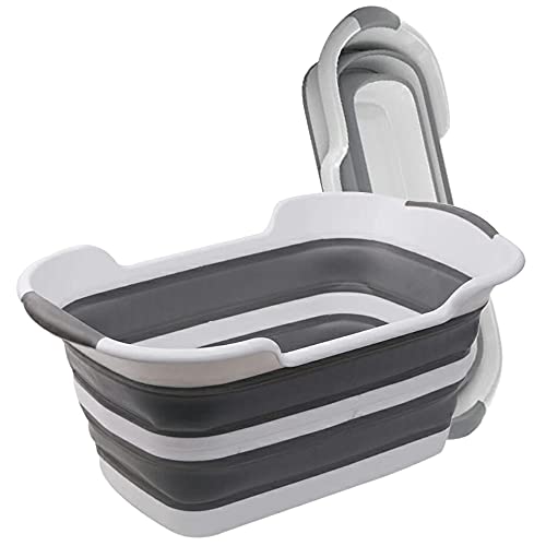 折り畳み式の大型バケツです。洗濯物のつけ置きにぴったりですし、取っ手と水抜き栓付きですよ。コンパクトに折りたためるので使い勝手がいいですよ。