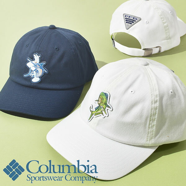 コロンビアのキャップはいかがでしょう?オムニシェード素材なので、紫外線対策にもにおすすめです。コロンビアのキャップはフロント中央にワンポイントあるものが多いのですが、魚のデザインが面白かったのでこちらを選んでみました。釣り好きさんならぜひ!