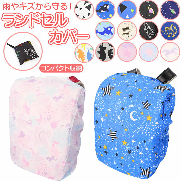 パステルカラーで、メルヘンチックなデザインが可愛いレインカバーです。広げて被せるだけでの簡単。ランドセルがすっぽり入り雨や傷から守ります。たたんでコンパクトにでき携帯に便利です。