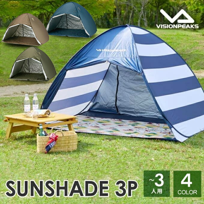 こちらの、三人用のポップアップテントは如何でしょうか?設営がとても簡単ですぐに完成します。年に数回行く程度でしたら十分です。おしゃれなカラーです。