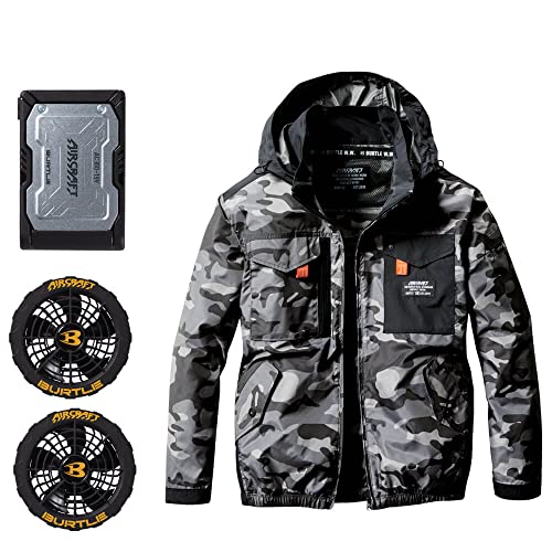 こちらのバートルの長袖の空調服はどうでしょうか。ファンやバッテリーがセットになっていますしグレーのカモフラ柄がおしゃれです。