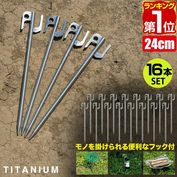 ランキングで1位の軽量で丈夫なチタン合金製のペグは如何でしょうか。硬い地面でも曲がらないペグです。お得な16本セット買いができるので、おススメです。