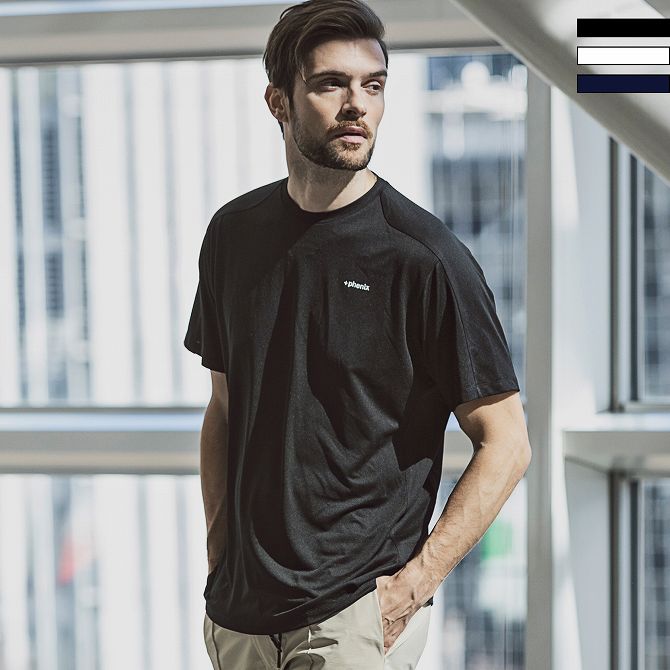 機能性に優れたアウトドアで使える+phenixのDRY JACQUARD LOGO TEEはいかがでしょう。吸水速乾、軽量などのおしゃれな半袖Tシャツなので、おすすめです。
