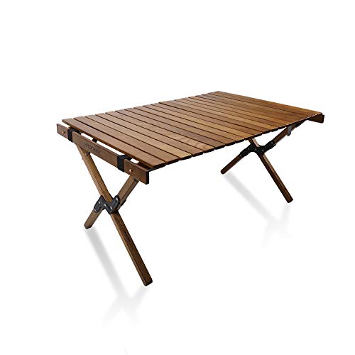 折り畳みタイプのウッドテーブルです。天板がすだれ型なのでコンパクトに収納できます。