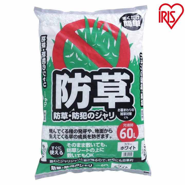 家の雰囲気を壊さない大容量60リットルの防犯ジャリはいかがでしょう。防草ジャリとしても使用できるおしゃれな軽石状のジャリなので、オススメです。