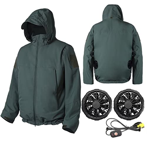 雨の日にも便利な大きめのフードが付いているタイプの空調服はいかがですか。風量は3段階で調節できます。