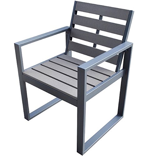 シンプルですが存在感のあるデザインのガーデンチェアーです。雨に強い人工木で作られています。