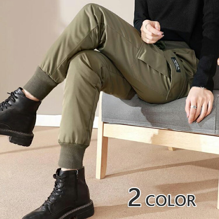 中綿入りのカーゴパンツがおすすめです。防寒性に優れており、冬のアウトドアに最適です。ちょっとワイルドさがあるデザインで、アウトドア映えしますよ。カラーはカーキとブラックの2色から選べます。