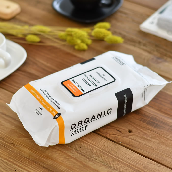 ORGANIC CHOICE(オーガニックチョイス)のマルチバンブーワイプがおすすめです。竹繊維でできた大判のウェットシートで、土に埋めると4~5週間で土に還るので、エコですよ。除菌シートとしても使えます。96枚入りでコスパがよいです。