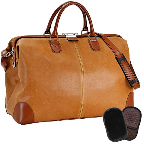 鞄の産地兵庫県豊岡市生まれの平野鞄のボストンバッグです。オールドレザー調のレトロな雰囲気の大容量バッグで、口枠ダレス式のため口が大きく開いて出し入れがしやすいバッグです。本革に比べて軽量で、防水・撥水性にも優れているため、汚れをさっと拭いて取ることができるため、お手入れが楽です。2泊3日程度の旅行に丁度良いサイズで、色はブラックとキャメルの2色から選ぶことができます。