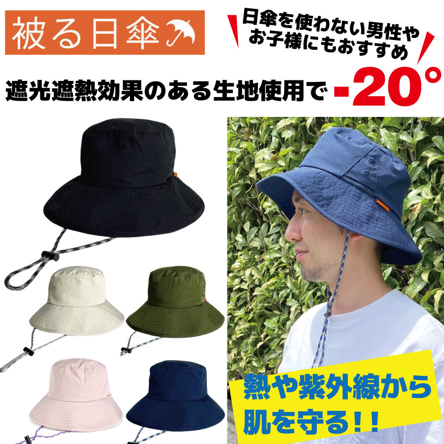 こちらの被る日傘はいかがでしょうか。遮光生地を使用しているので紫外線予防にぴったりだと思います!バケットハットなので普段のコーディネートに取り入れやすく、カラーバリエーションも豊富で男女兼用で使えるのでおすすめです!