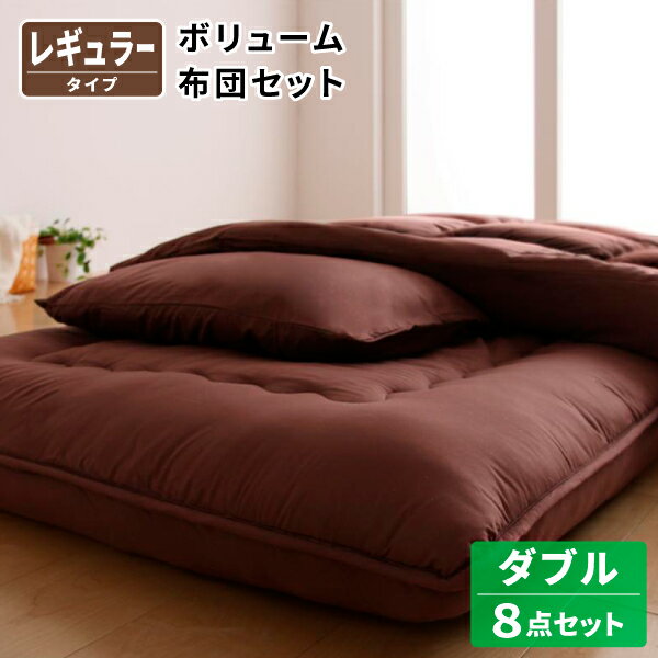 こちらのダブルサイズボリューム布団6点セットはいかがでしょうか?敷布団・掛布団・枕・各カバーが入った6点セットの商品です。敷布団はしっかりとした厚みがありふかふかの快適な寝心地を提供し、側地部分は洗濯機で洗うことができるので汚れも心配なく使用できます。ホコリなども出にくい快適な布団セットでお勧めです。