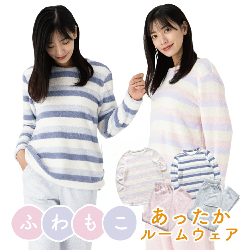 こちらのふわふわのパジャマはいかが。ボーダーデザインも可愛い保温性に優れているのもいいです。上下セットでポケット付きなのもいいですね。
