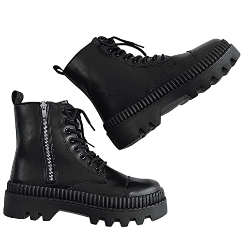 こちらハイカットの編み上げブーツです。編み上げなのでぴったりフィットするように調節できるので安全ですし、外側サイドジップなので脱ぎ履きも簡単なので楽ですね。厚底で履くだけで約6センチ身長が高くなるので、スタイルアップもかないますね。メンズとありますがユニセックスなデザインなので、女性でもかっこよく履けていいなと思います。