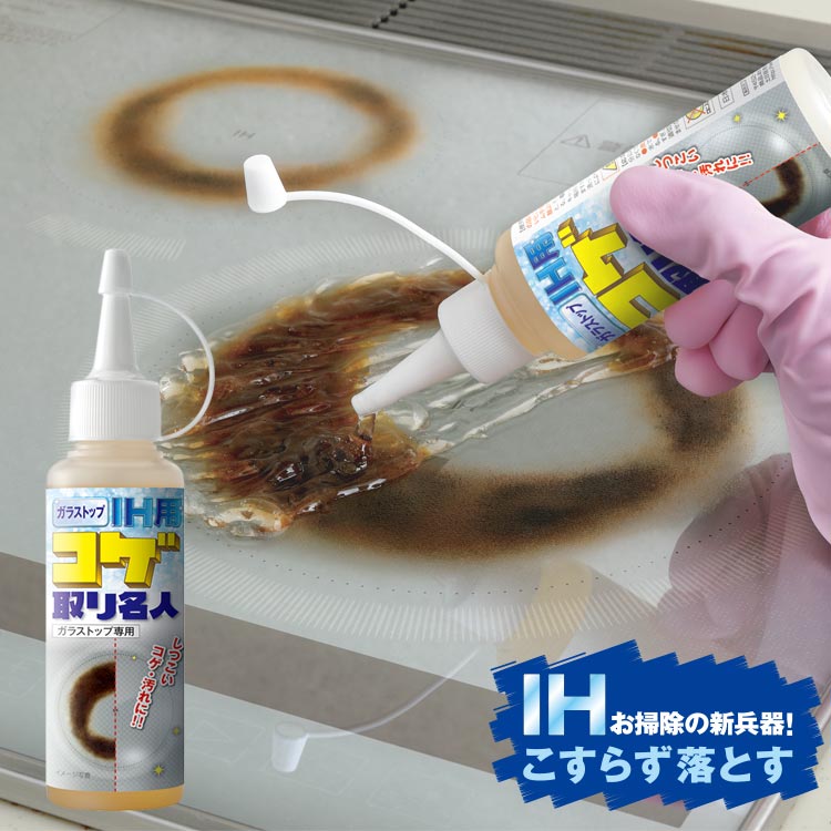 こちらの焦げ取り名人はガラストップ用ながらもIHだけでは無く通常に台所ガスレンジ周りの焦げ取りにも代用で来ます。洗剤を付けてしばらく放置という簡単な掃除方法が快適です。
