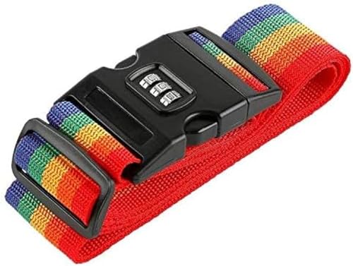 ワンタッチ式のスーツケースベルトです。おしゃれな虹色デザインのバックル式なので、使い心地がいいと思います。3桁のダイヤルロック式ですよ。