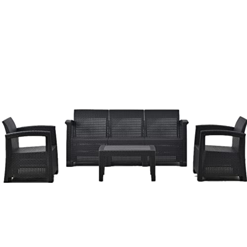 シンプルですが重厚感のあるラタン調デザインになっているガーデンファニチャーセットはいかがですか。カラーは2色あります。
