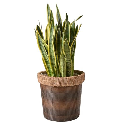 虎の尾を室内の台の上に置いて育てています。別名サンスペリアともいいます。空気を浄化する効果のある観葉植物で縦にもぐんぐん伸び今や天井まで届くほど成長しています。新しい葉も次々に出てきて育てやすいですよ。新しい葉が出ると密集度が高くなってきますのでカットした葉は花瓶の水に入れておくと下からまた根が出てきて何年も長く花瓶でも育てられるので増えます。寝室用でしたらある程度大きい10号鉢がお薦めです。