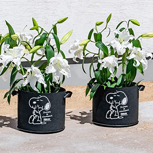 軽量で割れることなく、不要なときは折り畳んでコンパクトにできる、不織布ポット2個セットです。直径30cm×高さ25cmの10号サイズで、黒地に白でスヌーピーとウッドストックがプリントされているいます。通気性・透水性の良い厚手の不織布を使用した屋外用のプランターで、水はけがよいため、鉢底石を敷き詰めることなく使用できます。底穴が開いていないため土が流れることなく、ベランダでも使用できます。