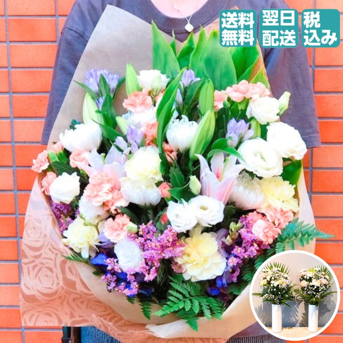 こちらのひまわりなど存在感のあるお花も使われた生花はいかが。ボリューム感もあり、一対のセットでお墓参りや仏壇にも。色鮮やかで故人も喜んでくれそう。