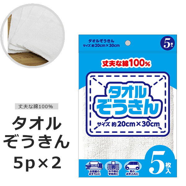大掃除や車の手入れなどに使えるタオル雑巾・10枚セットです。約20x30㎝サイズのシンプルなデザインになっており、綿100%で吸水性のある丈夫な雑巾です。コスト的にもお得感のあるものですので、良いのではないかと思います。