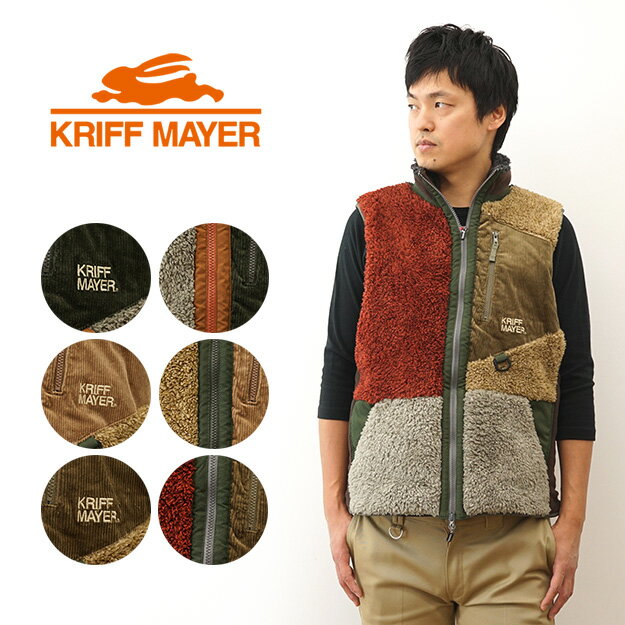 KRIFF MAYER(クリフメイヤー)のシャギーボアベストがおすすめです。軽くて暖かいフリースベストで、マルチカラーがおしゃれです。左胸のポケットがいい味出してます。