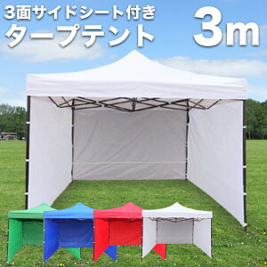 3面に横幕付きのスチールフレームのタープテントです。コンパクトに収納できて移動しやすくなっています。サイドと後方にシートが付いているので、陽射しが強い日のキャンプやバーベキューなどのアウトドアやイベントなどで大活躍です。