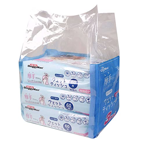 ドギーマンのペット専用ウェットティッシュは、保湿成分が入っていて肌に優しいのがいいですね!厚手なのでしっかりと拭くことが出来ますよ!