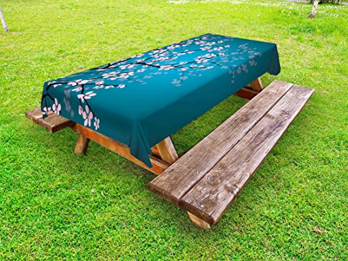 せっかくの春キャンプなので、かわいい桜の花がプリントされているテーブルクロスはいかがですか。丸洗いできるタイプです。