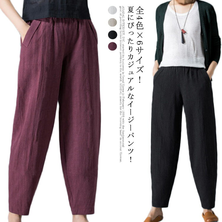 薄手で軽やかなテーパードパンツは快適な履き心地です。綿麻風素材でカジュアルにも部屋着にもぴったりでロング丈でスタイルアップもできるのでおすすめです。