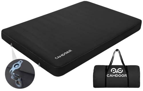 CAMDOORのエアーマットは、ダブルサイズで厚さ10cmの快適な寝心地を提供します。90秒で自動膨張し、ソフトな手触りでリラックスできます。防水・防潮機能付きで、四季を通じて使用可能。車中泊やキャンプに最適で、収納バッグとインフレータブルバッグも付属し、持ち運びが簡単です。防災用にも対応し、無臭で安心して使用できます。便利な収納と手軽な設置で、アウトドアライフをサポートします。