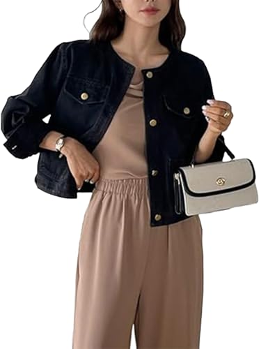VGSAPRLEYのレディースデニムジャケットVG24は、ノーカラーデザインで顔まわりをすっきり見せ、女性らしい抜け感を演出。春や秋にちょうど良いショート丈で、軽やかに羽織れるのが魅力です。ブラックカラーはどんなコーデにも合わせやすく、フリーサイズ仕様で体型を問わず快適な着心地を実現。カジュアルからきれいめスタイルまで幅広く活躍し、普段のお出かけはもちろん、通勤や旅行にもおすすめの万能アウターです