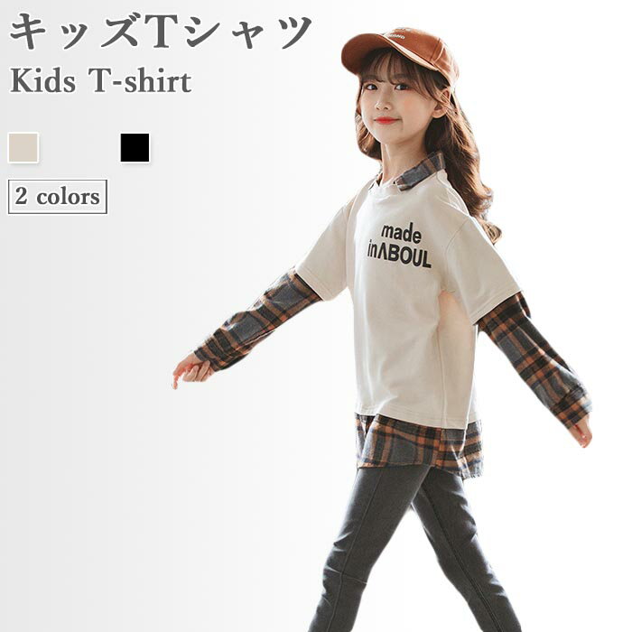 フェイクレイヤードの長袖Tシャツがおすすめです。チェック柄の長袖シャツの上にトレーナーを重ね着しているように見えます。ちょっと大人びたデザインで、とてもおしゃれで可愛らしいですよ。
