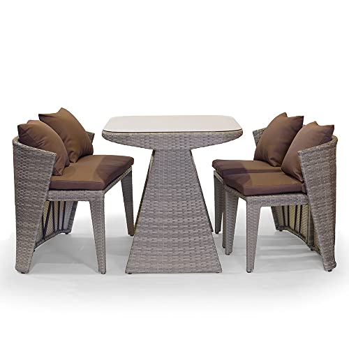 すっきりとしたデザインで、重厚感のあるガーデンテーブルセットはいかがですか。ラタン調の防水素材が使われています。
