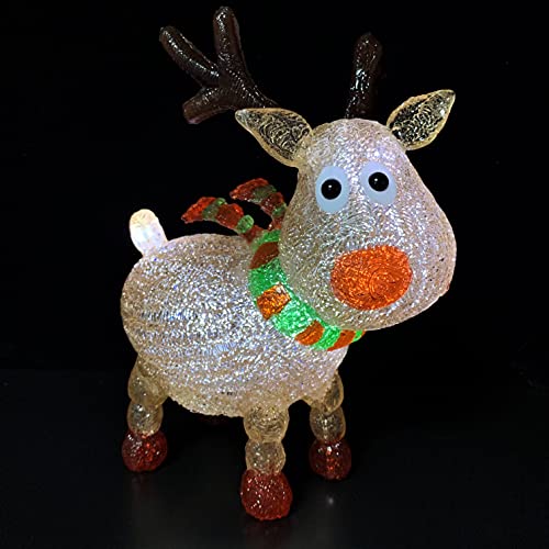 カラフルでかわいいマフラーを巻いているトナカイデザインのイルミネーションライトはいかがですか。サイズは32センチです。
