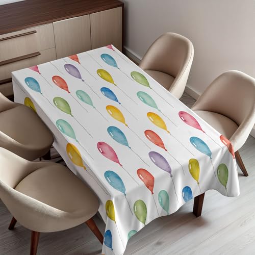 カラフルな風船をモチーフにしたテーブルクロスです。華やかなデザインと色使いなので、ホームパーティなどにふさわしいと思います。