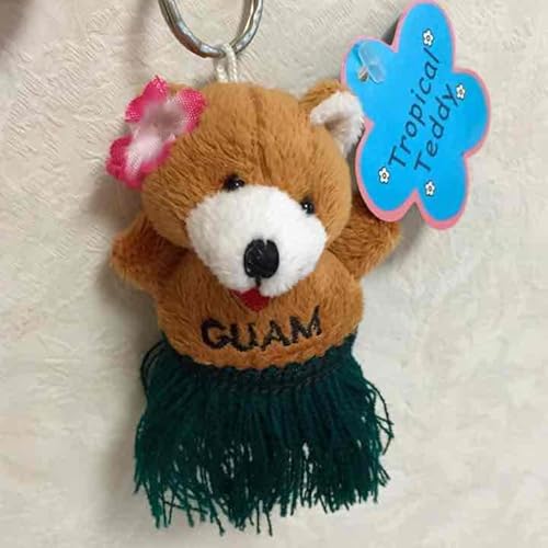 愛らしいテディベアがポリネシアンダンスの衣装をまとい、南国グアムらしいトロピカルな雰囲気を表現したマスコットで、サイズが選べるぬいぐるみキーホルダーなどとして、女性や子どもへのお土産に特に喜ばれるかわいらしさと記念品としての特別感が特徴です。