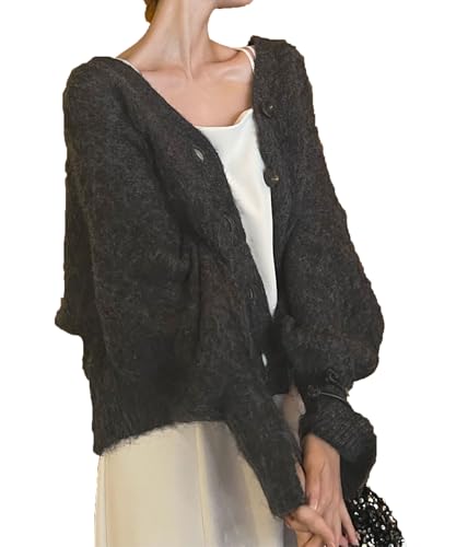 シャギーニットのおしゃれなカーディガンです。上品なデザインとカラーですし、着心地がよく、秋ファッションに合わせやすいと思います。