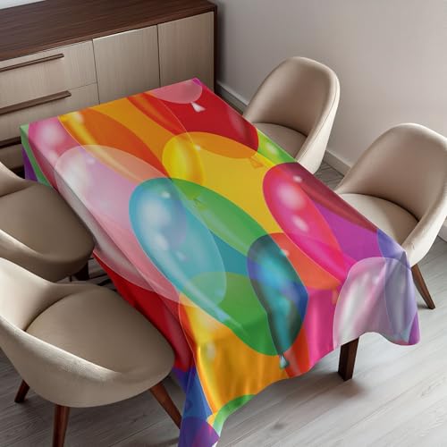 Ambesonneのカートゥーンテーブルクロスは、カラフルなバルーン柄で誕生日やお祝いシーンにぴったり。長方形60×90インチサイズでダイニングやキッチンに最適。楽しいイラストが雰囲気を盛り上げ、耐久性のある素材で繰り返し使用可能。マゼンタイエローの鮮やかな色合いがテーブルを華やかに彩ります。