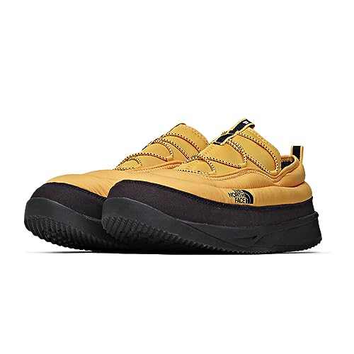 ノースフェースの防寒シューズはいかがですか。軽量でエコ断熱材が入ってるので保温性抜群で暖かく履けます。厚底でクッション性があり歩きやすいシューズでし。靴底は防滑ですので安心して履けると思います。色はおしゃれなイエローで男性に似合うと思いました。この防寒シューズでしたら秋冬キャンプで暖かく履けると思いますのでおすすめします。
