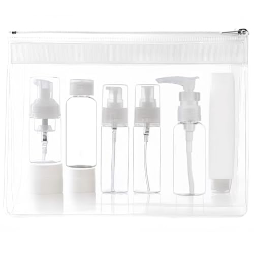 旅行時に使いやすい小分けボトルセットで、シャンプーや化粧水を手軽に詰め替えられ、荷物をすっきりまとめたい方に向いた実用的なアイテムです。