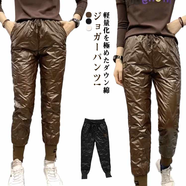 軽量化を極めたダウン綿のレディース用ジョガーパンツはいかがでしょう。防風性や保温性が高い中綿パンツです。