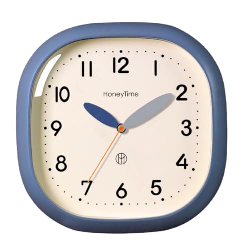 フィオズウィアのお部屋用壁掛け時計はいかがでしょうか?レトロ感のある角丸の四角で色合いも落ち着いたブルーです。サイズは25.5cm角の正方形です。接着式なので穴あけ不要!賃貸の壁にも設置できます。反射防止コーティングガラスが使用されておりどの角度からでもよく見えます。文字盤の数字も優しい感じでかわいいですよ。単一形電池1つで動きます。