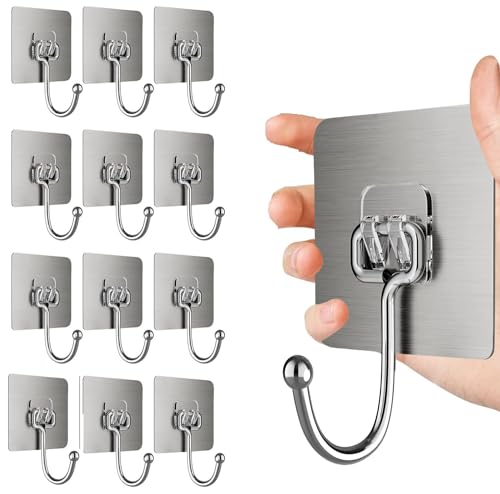 防水タイプの粘着テープ強力耐荷重20キログラム品の壁掛けフック12枚セットになります。穴をあけずに済むので賃貸でも傷が入らずに済み、貼り付け後なしでお部屋の景観を維持しやすくて、防湿、錆びない機能でしっかりと固定ができるアイテムになります。