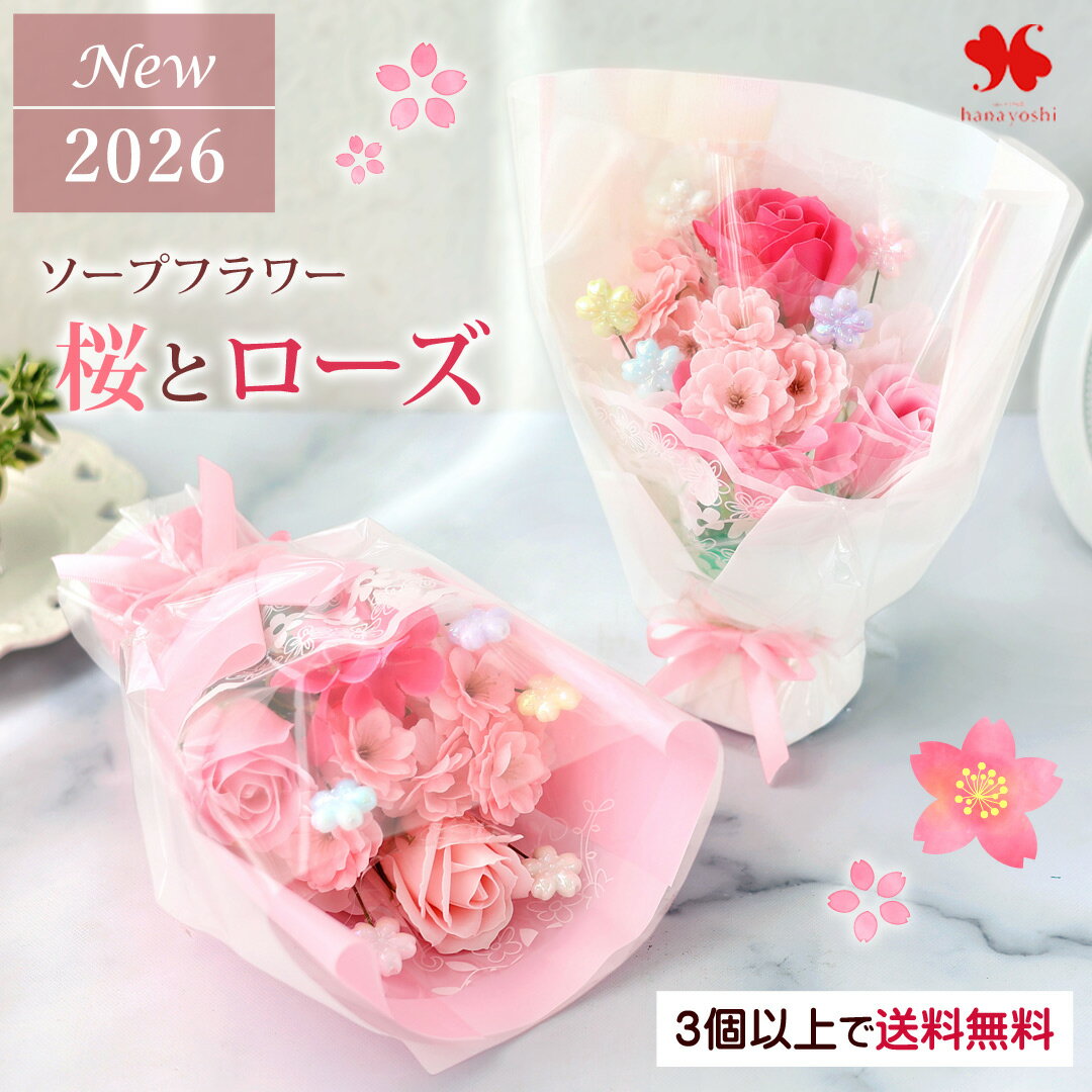 ソープフラワーのスタンディングブーケがおすすめです。桜とローズのアレンジメントになっており、明るくてとても可愛らしいです。引っ越しの日に手渡すのに最適ですよ。ソープフラワーなので枯れないし、花瓶なしでそのまま飾っておけます。