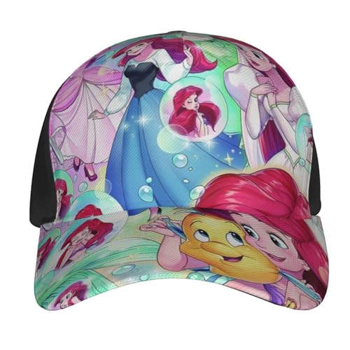 ディズニーシーのアトラクションで人気のリトルマーメイドに登場するアリエルの絵柄が入った帽子はいかがでしょうか?UVカットで紫外線防止になり、軽量で通気性もよく1年を通じてかぶれます。汗をかいても速乾性もあり蒸れずに快適!カジュアルコーデにも似合うと思います。サイズはつば7×高さ11.5×内周り57-60cmの男女兼用で後ろで調整可能です。素材は綿とポリエステル。お手入れはお家で手洗いができます。