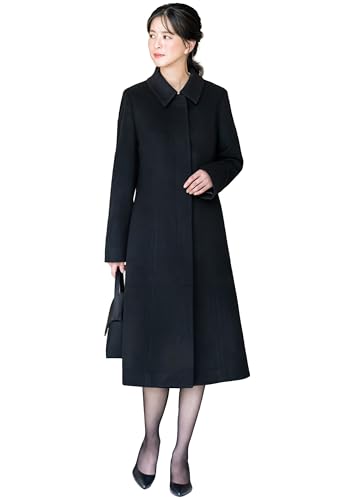 レディース用のおしゃれなステンカラーコートです。ウール100%なので温かく、ゆったりとした着心地。ブラックカラーなので、喪服の上に羽織るのにぴったりですよ。