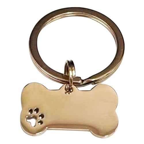 ピンクゴールドカラーの骨のデザインでおしゃれです 犬の肉球の透かしが、ワンポイントでついていて、かっこいいです ステンレス製で錆びずに長く使えます オーダーメイドで文字を刻印でカスタムできて おすすめです