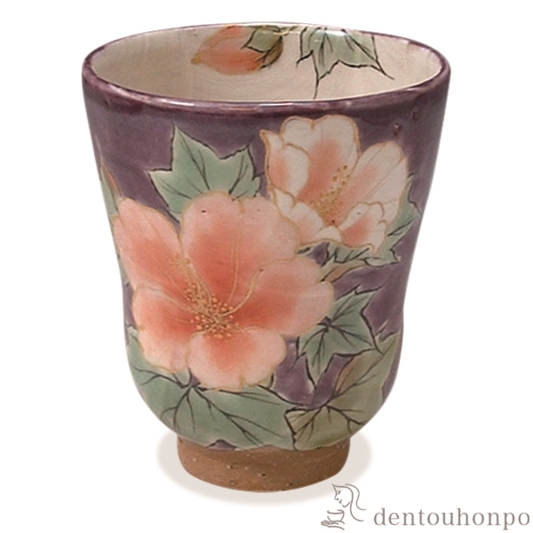 京都 清水焼の湯飲み、「一ヶ湯呑 紫塗芙蓉」はいかがでしょう。上質で美しい京焼の女性向きの湯飲みです。